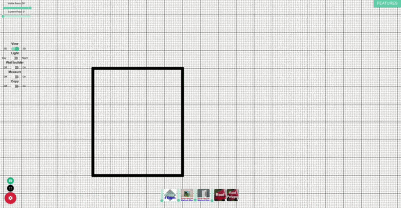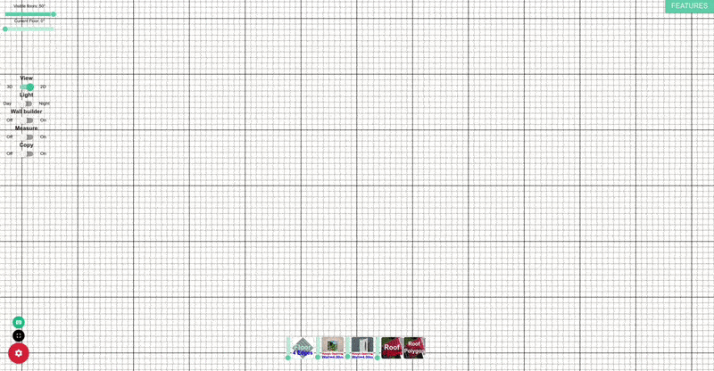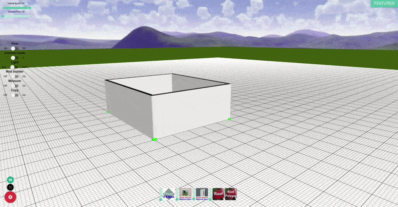 Нижняя группа инструментов отвечает за строительные элементы. Именно здесь добавляются полы, крыши, оконные проемы и дверные проемы. Принцип работы у них общий: вы создаете элемент, а затем можете менять его форму через управляющие точки, перетаскивая сферы в нужные позиции. Для аккуратной привязки используется удержание Shift, которое включает привязку к сетке.