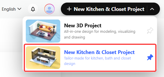 Создать New Kitchen & Closet Project.