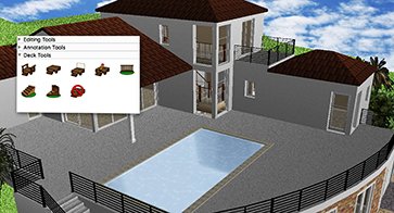 работать с участком, дорожками, deck-зонами, ограждениями, растениями и топографией;