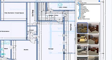 Второй базовый элемент — библиотечная логика. В программе активно используются Libraries tab, выпадающий список категорий и Preview Bar. Через них ты выбираешь мебель, материалы, растения, символы, отделку, декоративные элементы и перетаскиваешь их в план или прямо в 3D-вид. Это простая, но очень продуктивная схема: не надо открывать десятки диалоговых окон, чтобы добавить в проект новый объект. Достаточно выбрать категорию, пролистать превью и бросить нужный элемент в сцену.