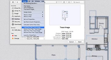 Технически процесс устроен очень понятно. Через Design menu > Floor Plan Trace Properties открывается окно настроек трассировки. Дальше нажимается Set Image, выбирается файл, он загружается в превью, после чего пользователь либо масштабирует подложку через Percentage, либо задаёт размеры через Dimensions. Если масштаб ещё не совпал, его можно подстроить повторно, изменяя горизонтальные и вертикальные значения до тех пор, пока рисунок не начнёт соответствовать реальным размерам. Подложку при необходимости легко скрывать и снова показывать через Design menu > Show Floor Plan Trace Image или флажок Image Visible.