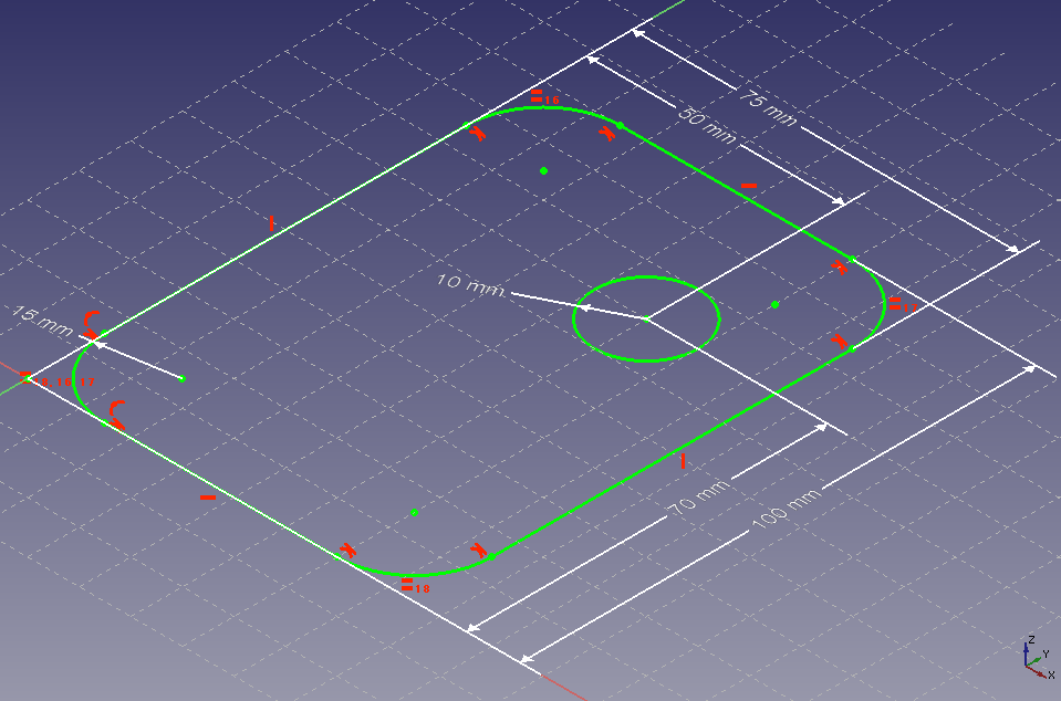 Цель — довести профиль до полностью определенного состояния. Когда эскиз fully constrained, его можно безопасно использовать как базу для твердотельного шага.