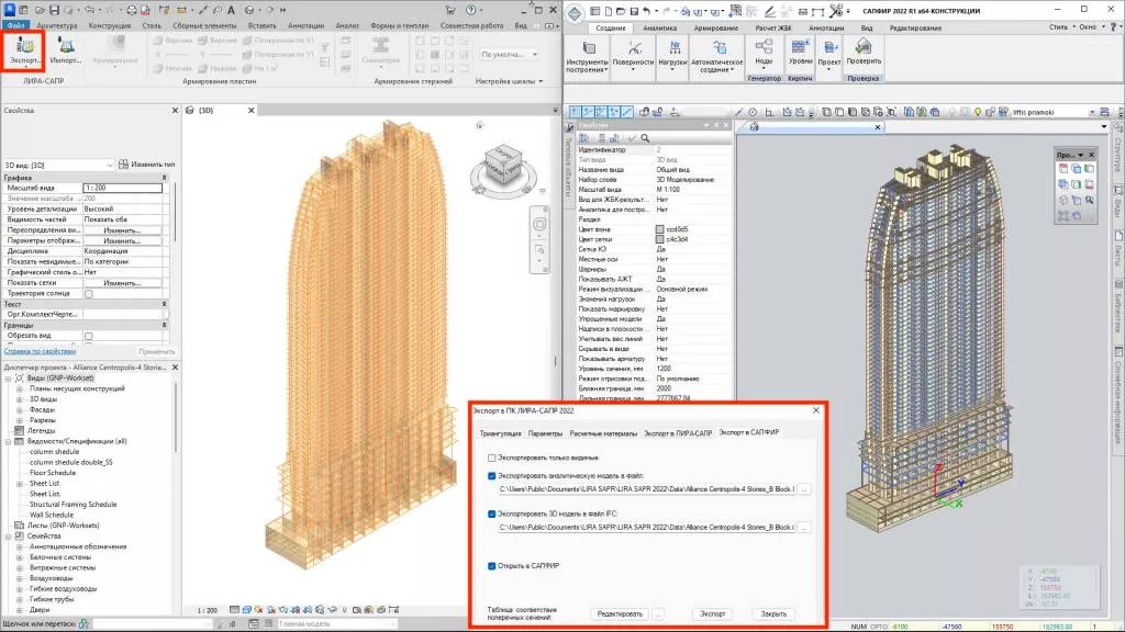 Связка с Revit в ЛИРА-САПР используется не только для передачи геометрии, но и для обмена аналитической моделью и результатами армирования.
