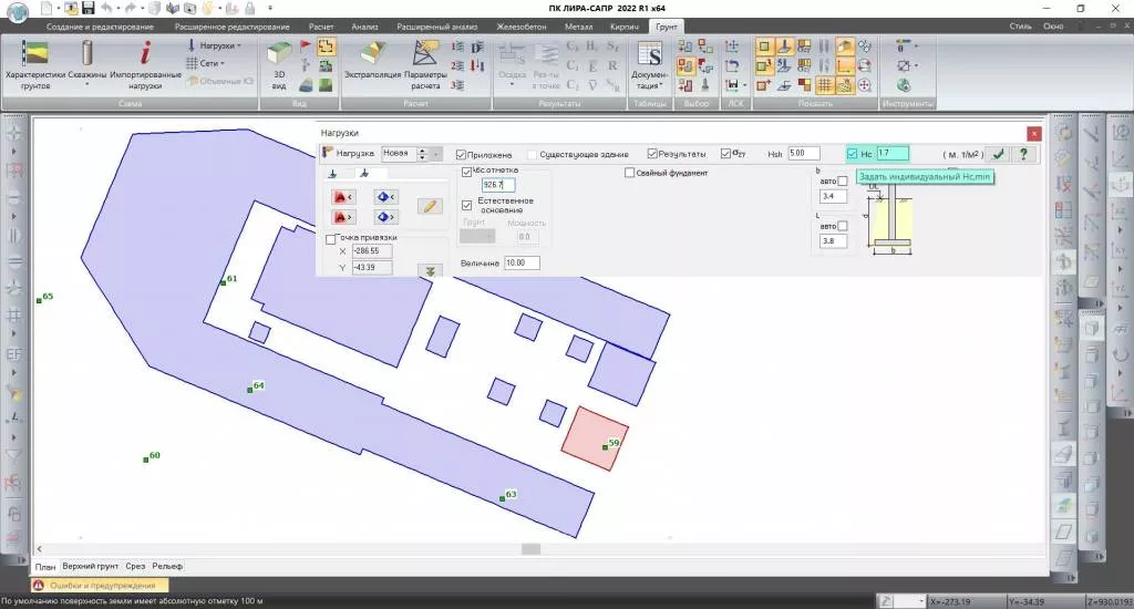 Возможности ЛИРА-САПР по работе с основанием — одна из причин, почему программу часто выбирают именно для строительных конструкций, а не заменяют универсальной МКЭ-средой. В системе ГРУНТ по всей области фундаментной плиты определяются коэффициенты постели С1 и С2, причем они зависят от нагрузок на фундаментную плиту и нагрузок по контуру. Это уже полноценная постановка задачи взаимодействия сооружения с основанием, а не примитивное назначение условного упругого основания одним числом на всю модель.