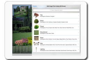 У PRO Landscape Companion сильная библиотека, и это не второстепенная опция, а основа всего рабочего процесса. Программа использует большую библиотеку объектов, в которую входят растения, hardscapes, water features, statuary, outdoor kitchens, fireplaces и другие элементы благоустройства. Для реального проектирования важно не только количество, но и структура доступа: нужный объект должен находиться быстро, иначе приложение теряет весь свой смысл как инструмент выездной продажи. В Companion это решено через локальные избранные, облачный доступ к полной библиотеке и поиск по названиям.