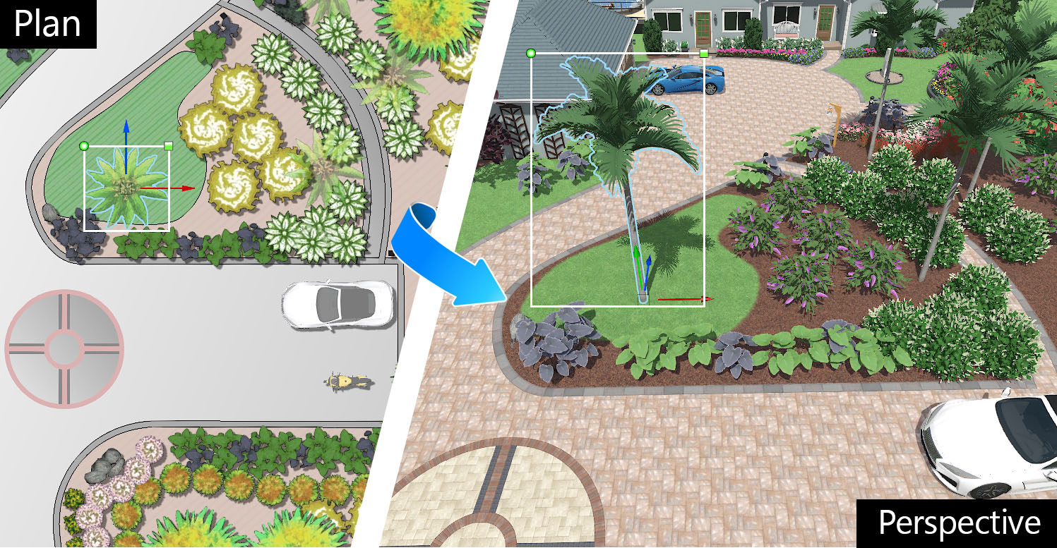 Именно автоматическое обновление Plan и Perspective делает Realtime Landscaping Architect удобным. Объект, добавленный в одном режиме, появляется и в другом, а при необходимости может иметь разный вид в плане и в 3D. В практической работе это означает, что ты не строишь отдельно чертёж и отдельно картинку, а ведёшь одну модель, которая обслуживает обе задачи одновременно.