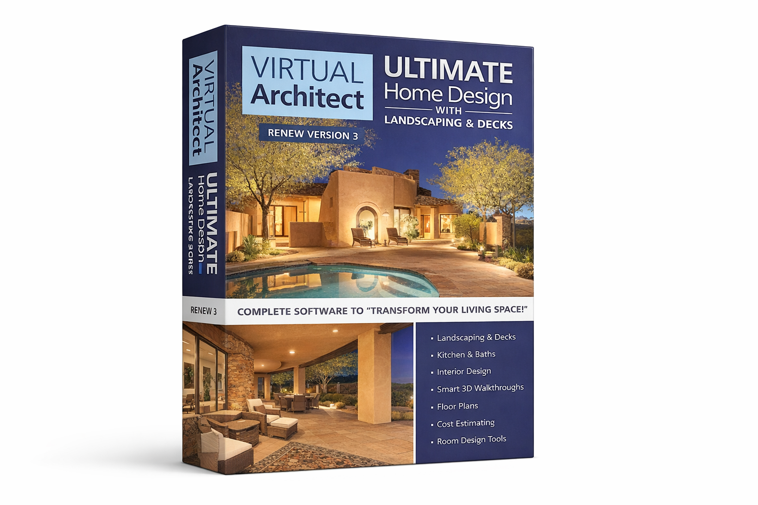 Virtual Architect Ultimate Home Design with Landscaping & Decks — это не абстрактная программа для дизайна дома, а конкретный настольный инструмент для трех крупных сценариев сразу: проектирование дома с нуля, ремонт и перепланировка существующего жилья, а также ландшафтный дизайн участка с террасами, дорожками, ограждениями и садовой инфраструктурой. В одном проекте здесь можно построить коробку дома, собрать интерьер, заменить отделку, продумать кухню и ванную, а затем перейти на участок и довести до ума deck, patio, fences, retaining walls, plantings и outdoor accessories. Именно эта связка дом + интерьер + участок и делает программу заметно интереснее узких интерьерных планировщиков.