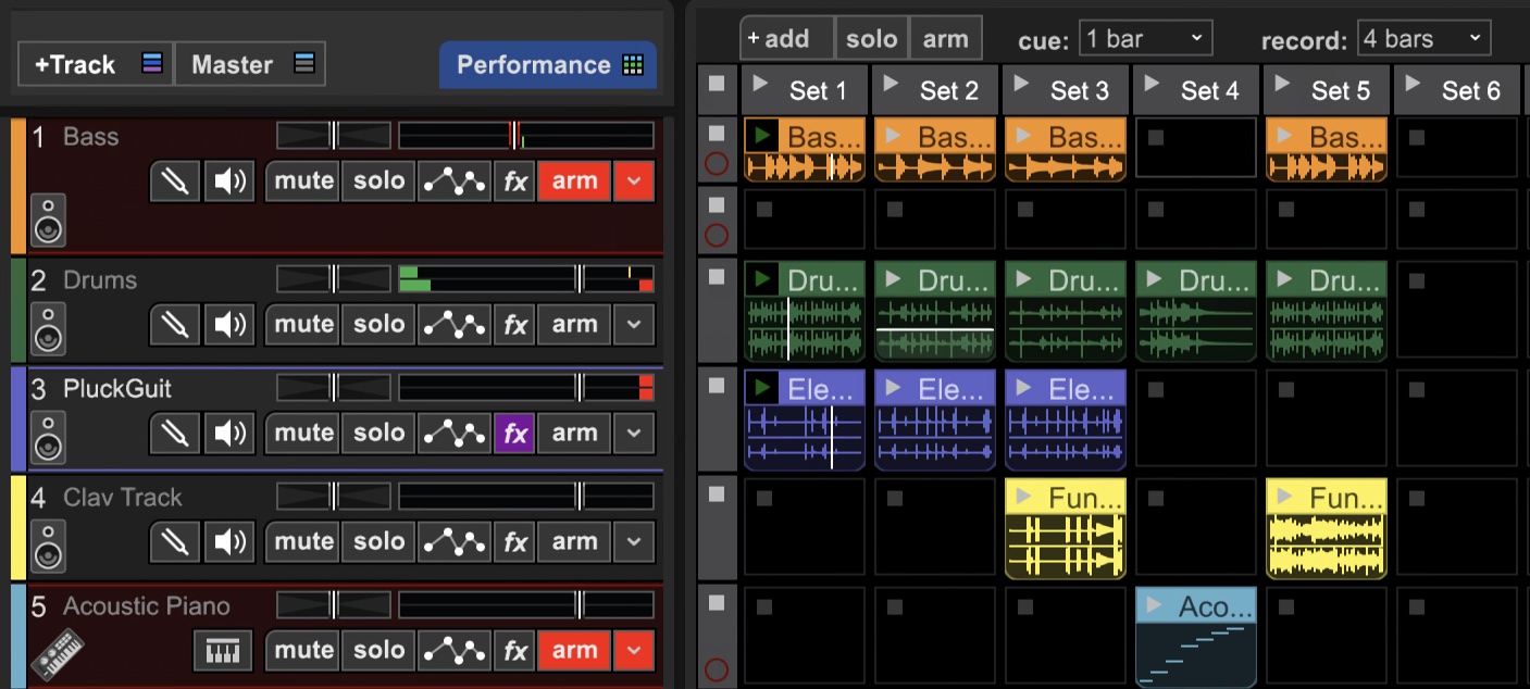 сильное сочетание линейной DAW и клипового режима Performance Panel;