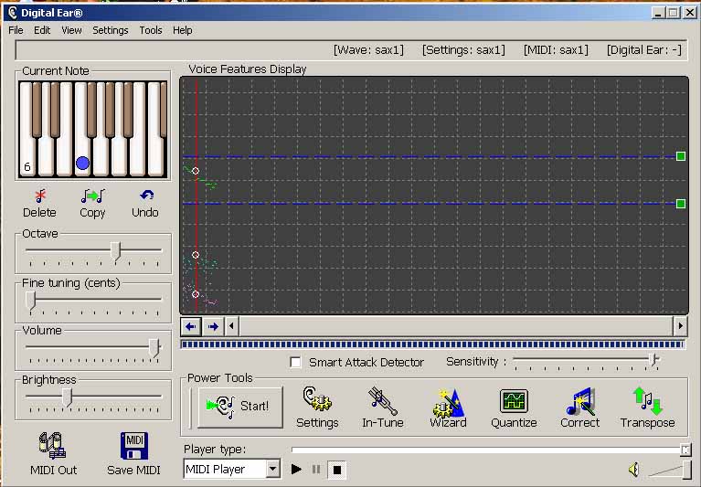 Главная идея Digital Ear проста: взять живое или записанное сольное исполнение, разложить его на управляемые MIDI-события и сохранить не только ноты как таковые, но и как можно больше исполнительной пластики — вибрато, тремоло, портаменто, изменение громкости, оттенки яркости тембра. За это программу и ценят: она не пытается быть еще одним конвертером, а строит из аудио именно MIDI-представление, с которым потом можно работать в секвенсоре, менять инструмент, править отдельные ноты, транспонировать материал, подгонять темп и собирать аранжировку дальше уже в другой среде.