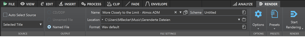 WaveLab Pro также грамотно связывает Master Section с рендером. В рендер-опциях для Audio Editor есть Bypass Master Section и Auto Save Master Section Preset, то есть пользователь сам решает, входить ли мастер-цепочке в экспорт и сохранять ли ее вместе с ancillary-данными файла. Это очень удобно, если вы работаете с несколькими вариантами мастера и не хотите потерять связку между файлом и используемой цепью.