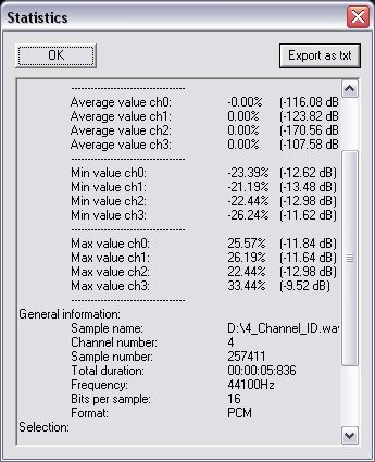 Окно Statistics полезно тогда, когда нужно быстро получить численные параметры файла: RMS power, минимальные и максимальные значения, средние значения и общую информацию по каналам. Это не просто справочная мелочь. Перед экспортом, выравниванием уровней, анализом проблемного файла или сравнением нескольких дублей статистика помогает быстро понять, насколько материал тихий, перегруженный, смещенный или несимметричный по каналам.