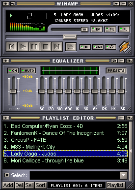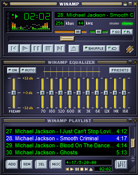 Ниже — главное окно Winamp, на котором хорошо видно общую логику интерфейса.