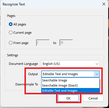 Еще один сильный момент Acrobat Pro — выбор поведения OCR. В настройках распознавания доступны режимы вроде Searchable Image и Editable Text and Images. Первый логичен, когда вы хотите сохранить внешний вид страницы максимально близко к исходному скану и при этом получить поиск по тексту. Второй — когда приоритет смещается в сторону последующего редактирования содержимого. Это не косметическая настройка: от нее зависит, насколько живым станет документ после OCR и насколько аккуратно сохранится исходная визуальная структура.