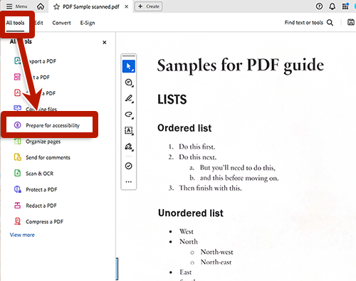 Одна из самых недооцененных причин использовать Adobe Acrobat Pro — его возможности для accessibility. Большинство PDF-редакторов умеет аннотации, OCR и защиту. Гораздо меньше продуктов нормально работают с тегами, reading order, альтернативным текстом, проверкой структуры и отчетами по проблемам доступности. Acrobat Pro делает это через Prepare for accessibility. Внутри этого инструмента доступны Check for accessibility, Open accessibility report, Automatically tag PDF, Fix reading order, Add alternate text и другие действия.