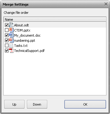 Окно Merge Settings в AVS Document Converter.