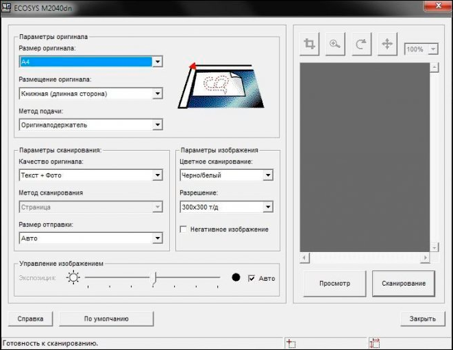 Предпросмотр доступен только при Platen. Для людей, которые хотят видеть preview вообще всегда, особенно при автоподаче, это будет восприниматься как ограничение. Но логика программы здесь фиксирована и понятна.