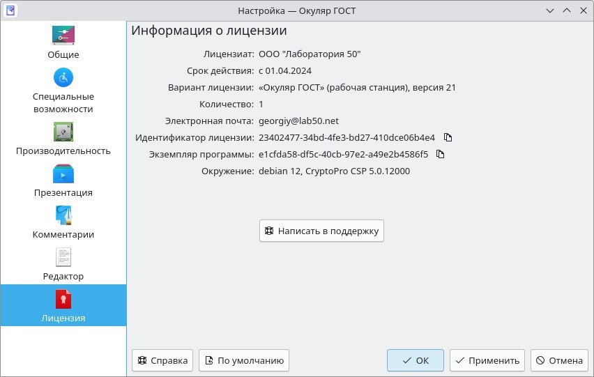 Отдельно программа интересна тем, кто работает в среде импортозамещения. Окуляр ГОСТ поддерживается на Альт, Astra Linux, Debian, Fedora, ОСнова, РЕД ОС, РОСА, Ubuntu и Windows, а также прошёл тестирование с носителями JaCarta, Рутокен, ESMART и Ангара. Это не мелочь, а один из ключевых аргументов в пользу программы: она хорошо ложится в реальную российскую инфраструктуру, где документ надо не только открыть, но и корректно подписать, проверить и передать дальше без экзотических обходных схем.