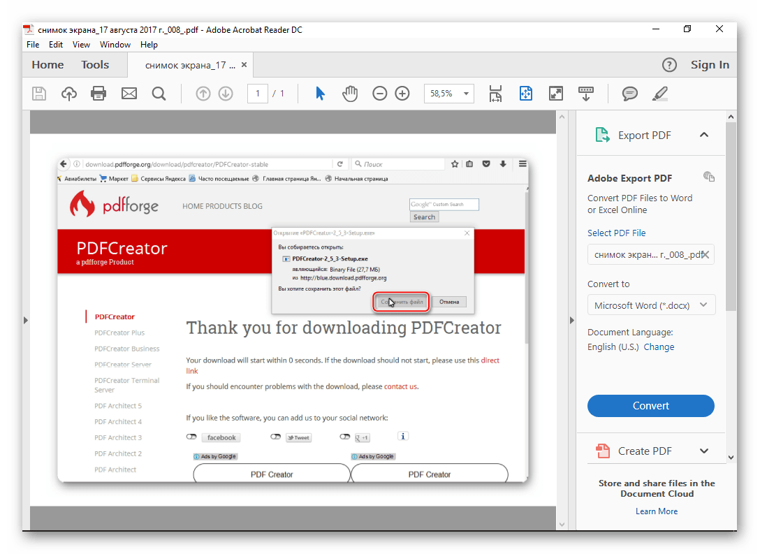 | Создание PDF из любых печатаемых документов | Через виртуальный принтер PDFCreator | Одинаковый сценарий для Word, Excel, браузера и специализированных программ |