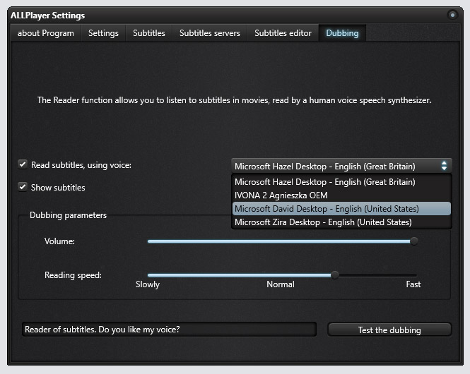 Озвучивание субтитров: Speech Synthesizer и читка текста голосом