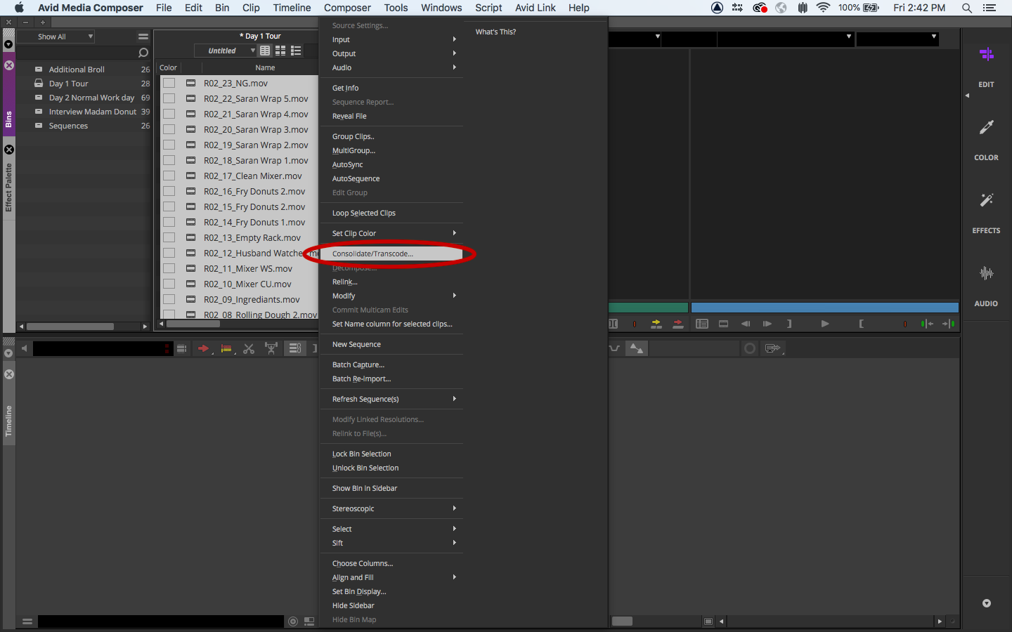 Consolidate/Transcode: как привести клипы к монтажному формату