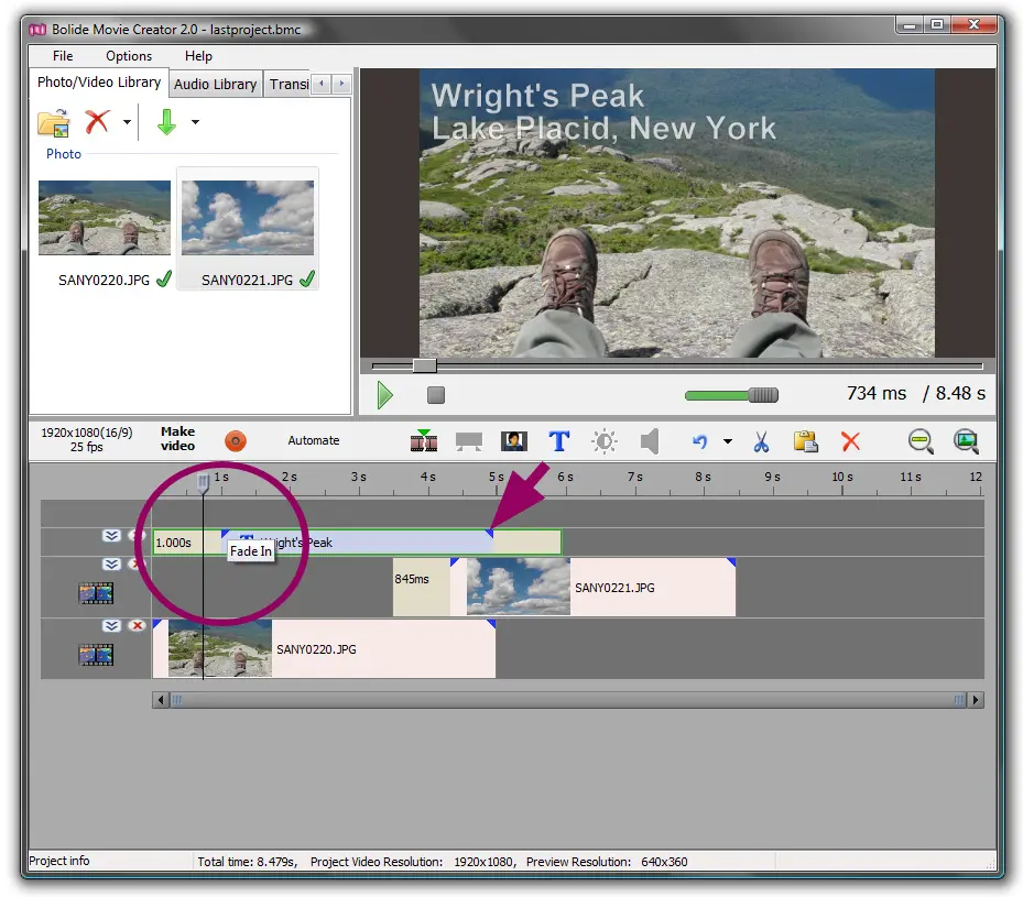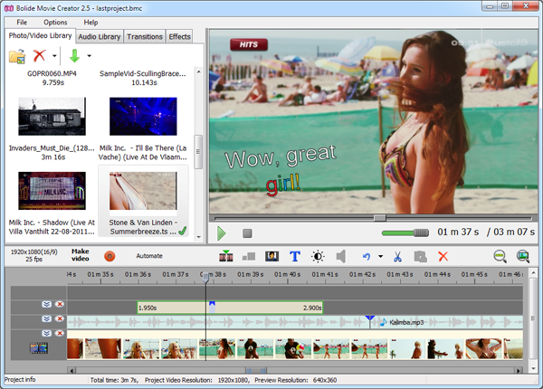 Bolide Movie Creator выигрывает скоростью сборки. Он действительно удобен, когда важен сам результат: нарезать, склеить, поставить переходы, добавить музыку и подписи, сохранить в MP4 — без лишних этажей интерфейса.