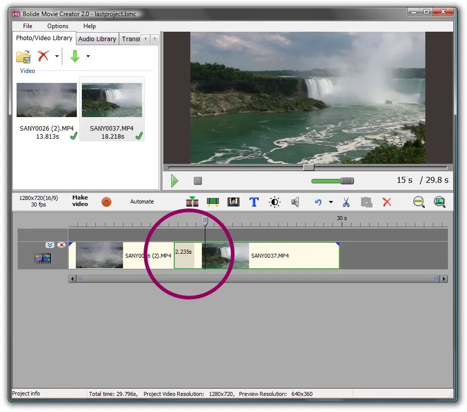 В Bolide Movie Creator монтаж удобно строить через короткие операции: