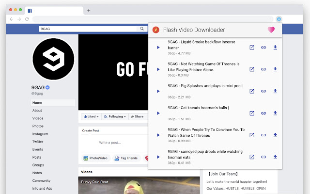 Логика работы расширения очень простая. Пользователь открывает страницу, где встроено видео или размещен медиафайл, затем нажимает иконку Flash Video Downloader. Если на странице есть доступные для обнаружения источники, popup-окно показывает список файлов, после чего можно скачать либо один элемент, либо весь список. Такой подход особенно удобен там, где видео встроено напрямую или страница содержит обычные URL медиафайлов без сложной защиты и без жестко фрагментированной потоковой передачи.