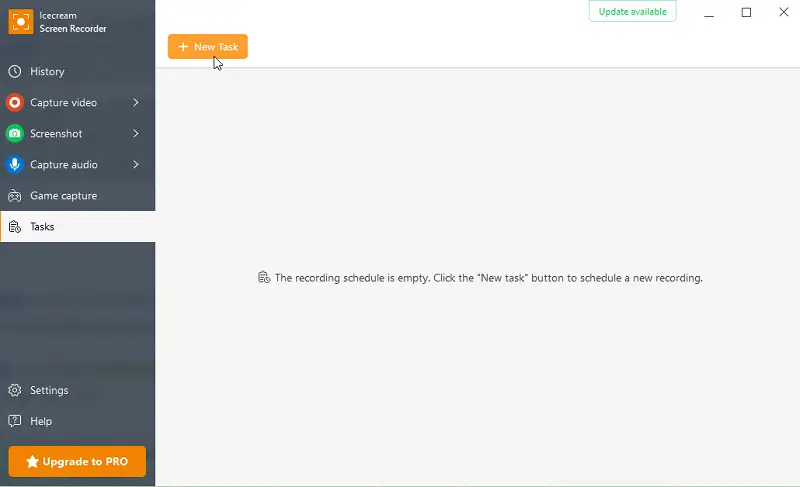 Сильная сторона Icecream Screen Recorder в том, что интерфейс не навязывает один сценарий. Если пользователь сегодня пишет видеоурок, а завтра просто делает серию скриншотов для документации, ему не нужно менять программу. Достаточно переключиться между Capture video и Screenshot. Если затем понадобится записать звук отдельно — есть Capture audio. Если нужно поставить запись на определенное время — есть Tasks и кнопка + New Task. Такой подход делает программу гибкой именно в офисной и обучающей работе, а не только в классическом записать экран и сохранить MP4.