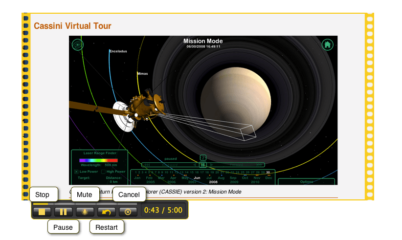 Панель записи показывает характерный подход Jing к видеозахвату: минимум настроек, максимум прямого управления. Во время записи доступны базовые кнопки паузы, выключения микрофона, остановки и перезапуска. Для короткой записи экрана этого достаточно. Пользователь не тратит время на сложную конфигурацию, а концентрируется на самом объяснении. Именно поэтому Jing часто использовали для быстрых screencast-инструкций, а не для продакшн-видео.
