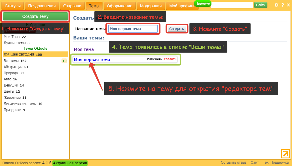 Как создать тему в OkTools