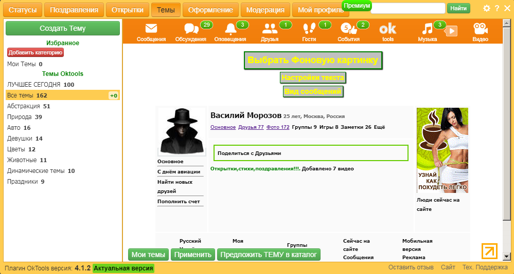 Второй тип — пользователь, которому важна персонализация. Если хочется не просто пользоваться OK.ru, а менять внешний вид сайта, создавать собственные темы и управлять оформлением отдельных блоков, модуль Темы OkTools становится одной из лучших причин поставить расширение.