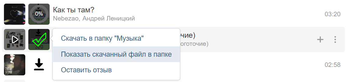 отметка уже скачанных треков;