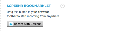 Для ускорения запуска Screenr предлагал и bookmarklet, который можно было перетащить в панель браузера. Это еще сильнее сокращало путь до записи: не нужно каждый раз отдельно искать нужный раздел сайта, достаточно было вызвать запуск сервиса из панели закладок. Для тех, кто часто записывал короткие screencasts, такая мелочь реально экономила время.
