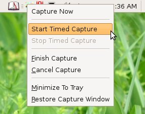 Ниже — типичное меню Wink в системном трее, из которого запускается timed capture.